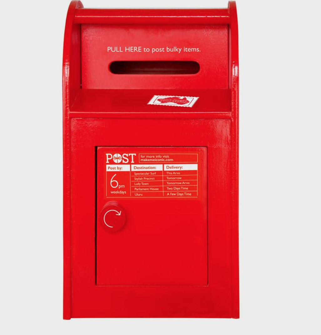 It has a pull down slot to post letters just like an iconic Australia Post Box. Little hands can attach wooden stamps to the wooden letters and/or postcards for imaginative pretend play using self sticking Velcro. Place your own Tooth Fairy or Santa letters in this wonderful post box to extend you play.