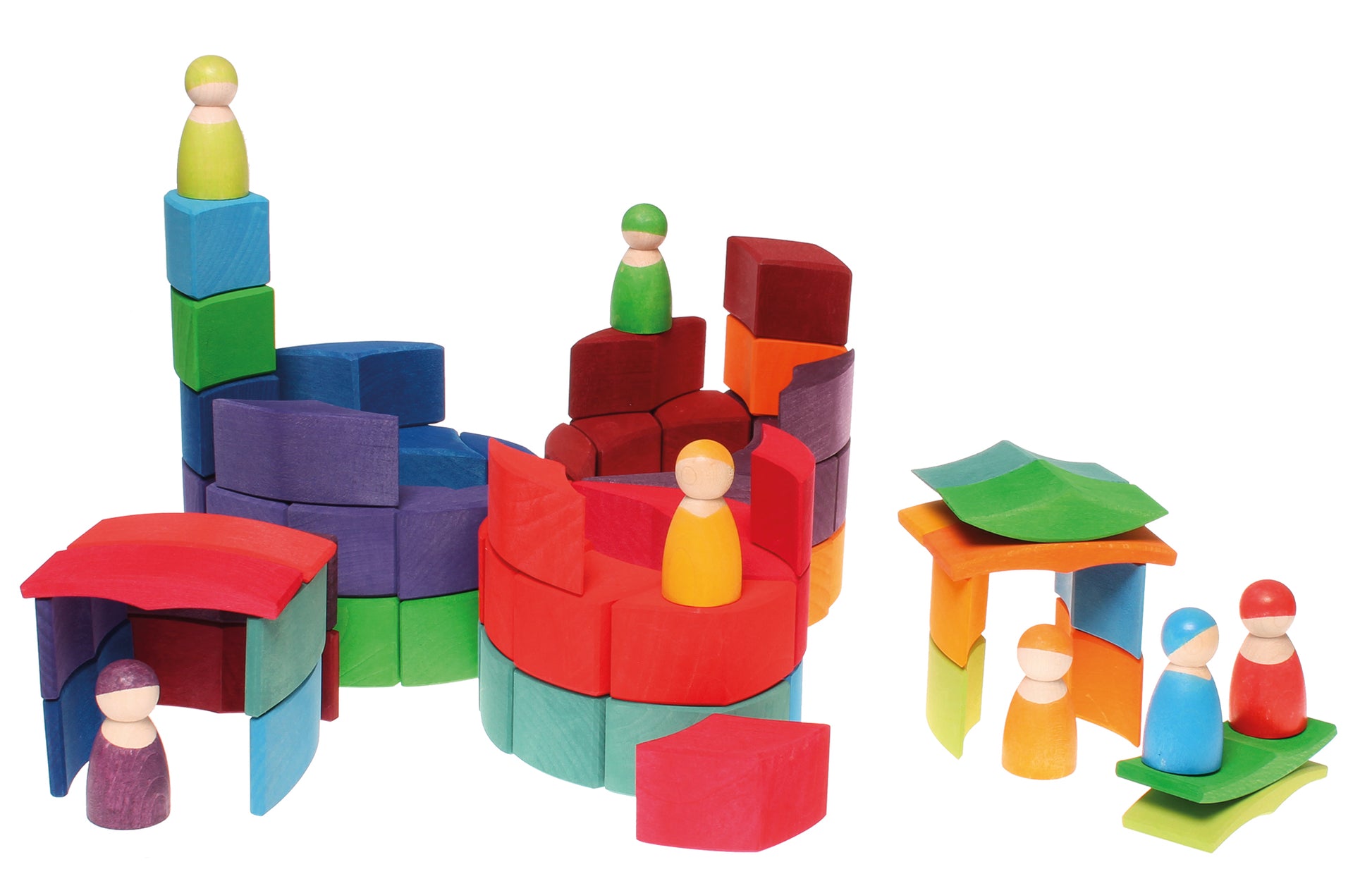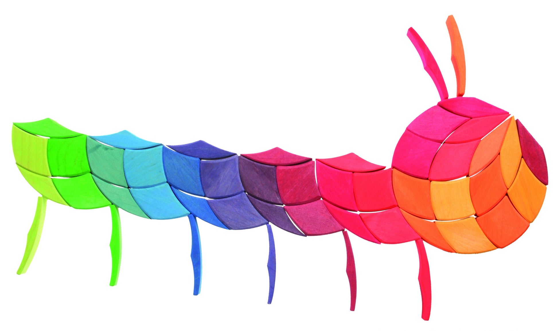 The Grimm’s Large Circular Colour Spiral is a stunning block set and puzzle, set upon a large wooden disc and held in that circle with an easy fit felt ribbon. This set invites you to create, let your imagination lead, there are endless creative possibilities, patterns, mandalas and three dimensional building, this set will inspire your creativity.