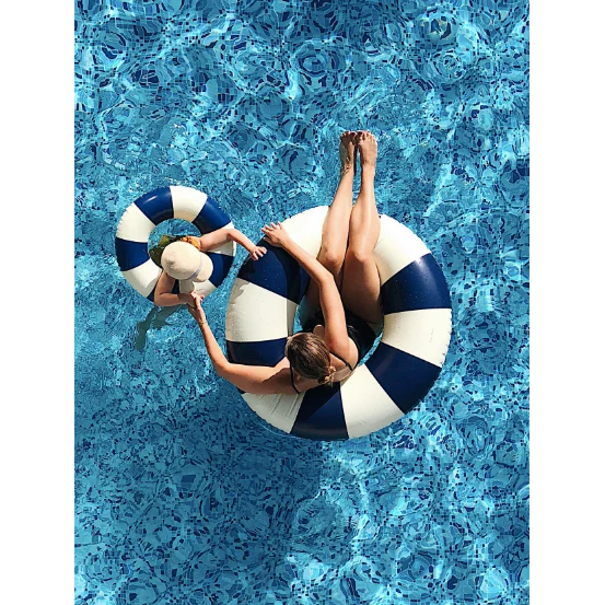 The Petites Pommes swim ring is a reborn childhood classic - made with the attention to detail to last for seasons. The characteristic striped floats from Petites Pommes come in 4 different sizes for toddler to adult, and in a range of beautiful colours to complete any summer look! Delivered in a reusable bag of organic cotton for easy storage. Extra fine inside seaming for premium comfort. Made of heavyweight, durable material to stand the test of time. Approved safe air valves. Included repair patch should you accidentally suffer a small puncture.