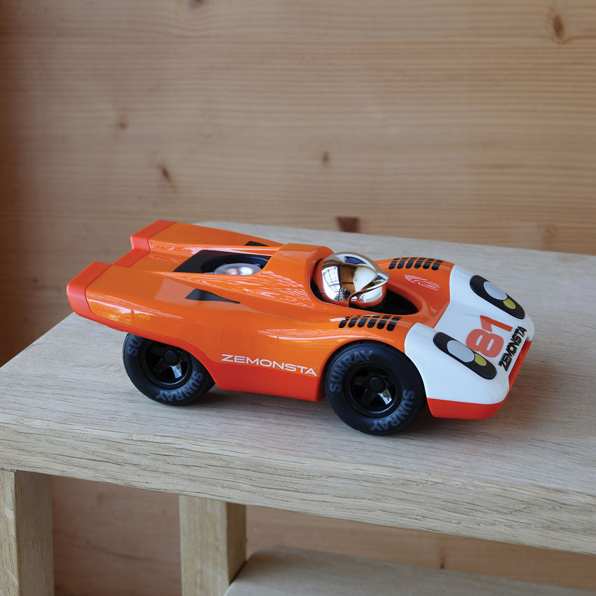 Block your ears—Zemonsta is roaring to life. Even at idle, this fierce machine sends a shiver down your spine. Inspired by the legendary Porsche 917, Playforever has transformed its untamed spirit into Egon: a bold, energetic track-devourer built to impress. Its vivid orange-and-white colourway turns heads instantly, while its powerful stance hints at the speed and attitude within. With Zemonsta on the move, you’ll want to clear the way—or risk being overtaken.
