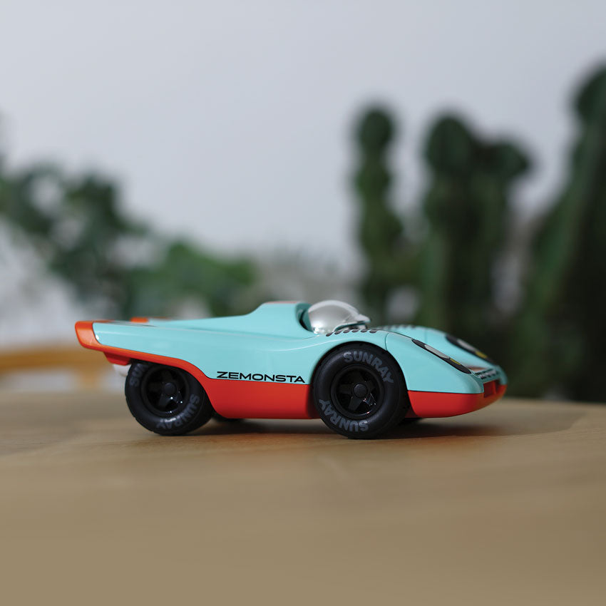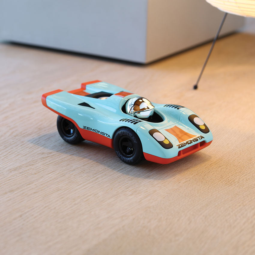 Block your ears—Zemonsta is waking up, and even at idle it sends a shiver through anyone nearby. A new fierce track-devouring contender has arrived, and we suspect Ken might be feeling the pressure (we certainly are). Drawing bold inspiration from the legendary Porsche 917, Playforever set out to capture the essence of this “beast of beasts” in a striking abstract form. With all that untamed energy, we may need to stock a few extra rows of Sunray tyres before test day arrives.