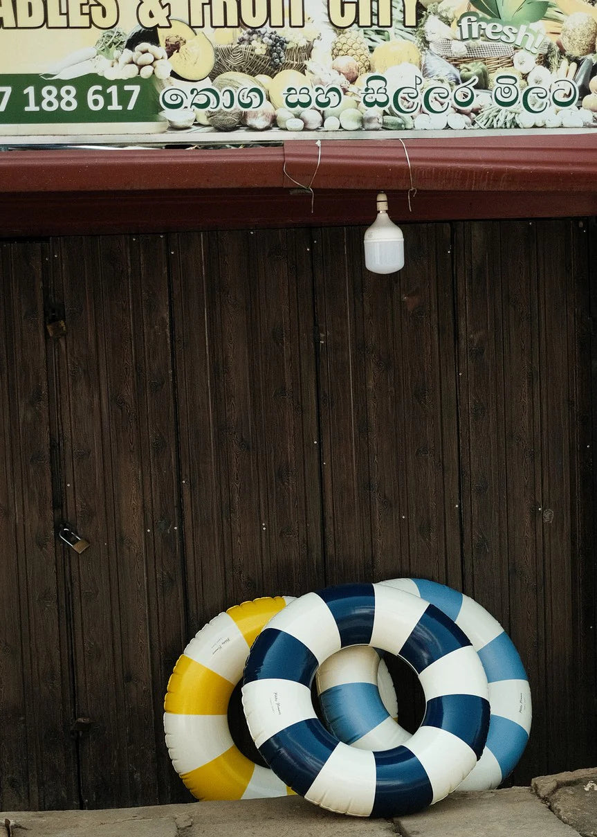 The Petites Pommes swim ring is a reimagined childhood classic—crafted with exceptional attention to detail to ensure it lasts for seasons of sun-soaked fun. Their signature striped floats come in four sizes, from toddler to adult, and in a beautiful palette of colours to complement any summer style.