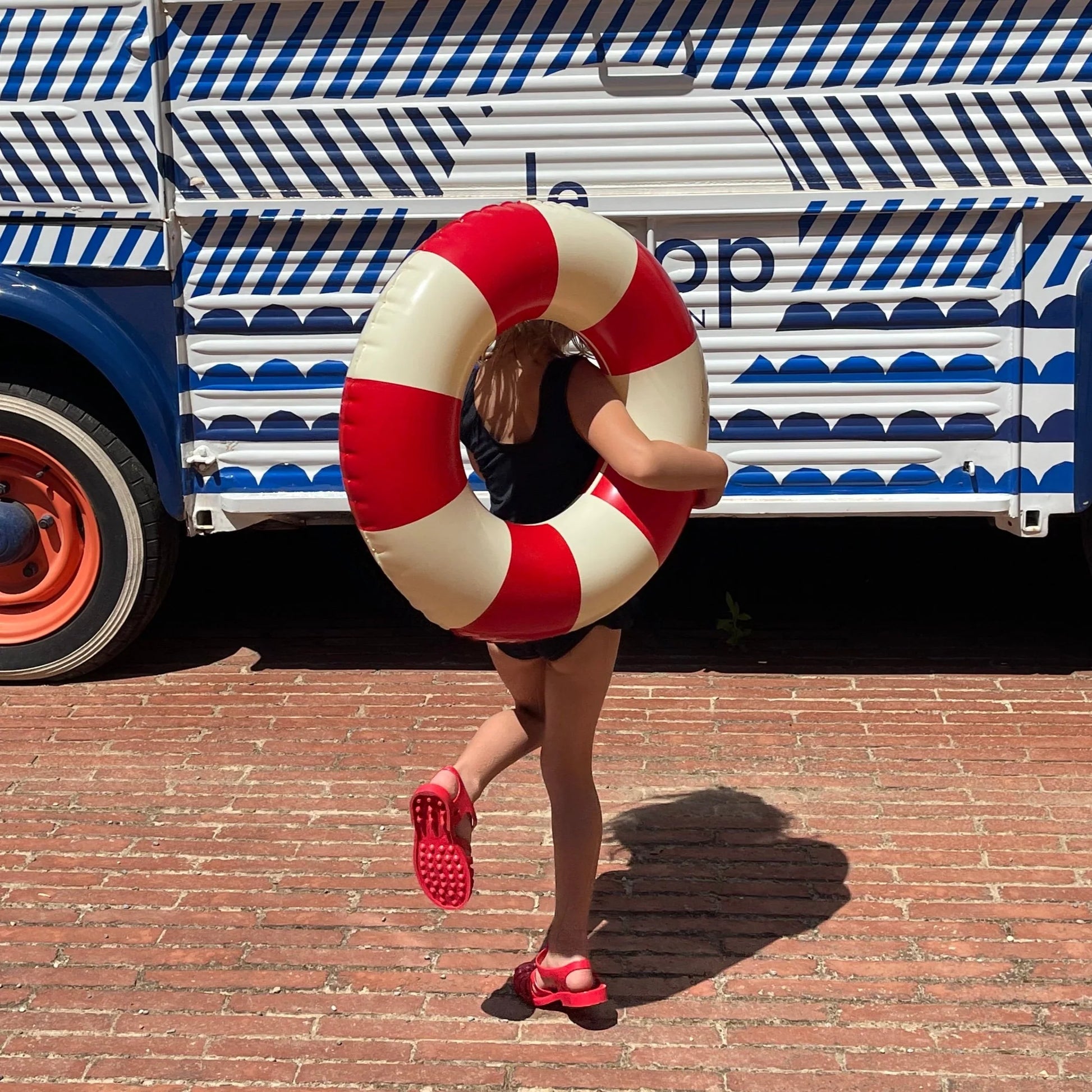 The Petites Pommes swim ring is a reimagined childhood classic—crafted with exceptional attention to detail to ensure it lasts season after season. Their signature striped floats come in four sizes to suit toddlers through to adults, and in a beautiful selection of colours to elevate any summer look.